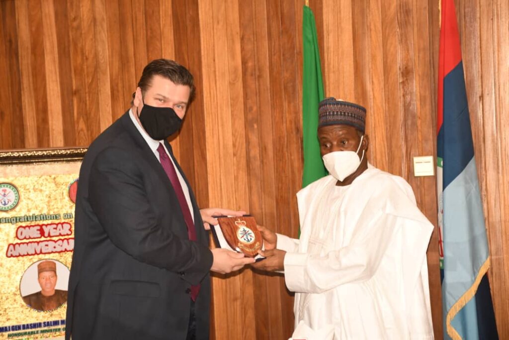 The British Minister for Armed Forces was accompanied on the courtesy call by the British High Commissioner to Nigeria Catriona Laing and the Defence Adviser British High Commission, Abuja Paul Warwick.